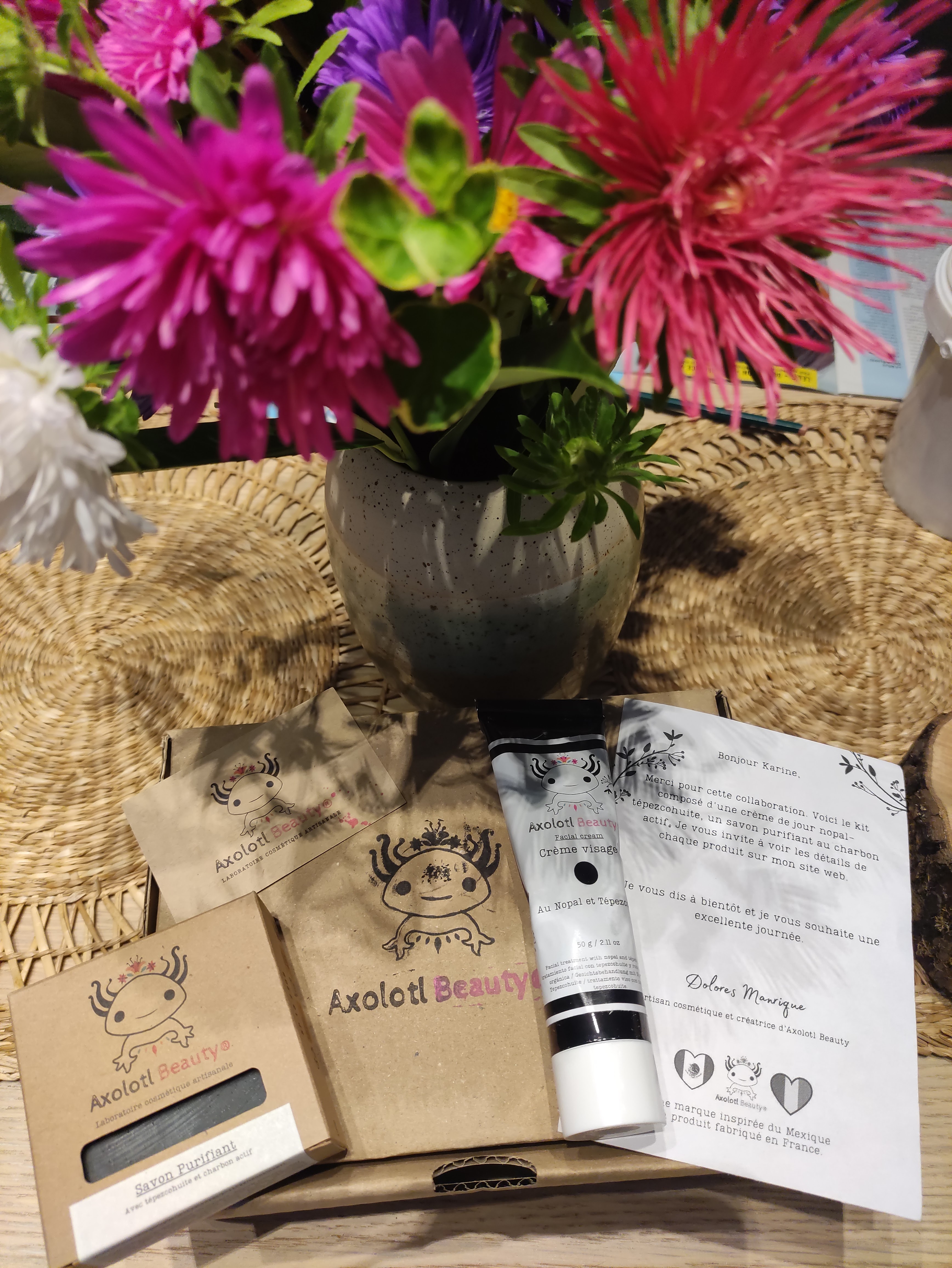 Une gamme de soins naturels inspirés du Mexique et fabriqués en France. Des cosmétiques totalement atypiques, naturels pour prendre soin de soi. Vous voulez être surpris par des produits qui changent votre quotidien avec des compositions qui changent vraiment de ce qui se trouve sur le marché, vous êtes ici à l'endroit parfait. De plus la créatrice est adorable. Les produits sont efficaces, il n'y a pas de promesses irréalistes. Un gros gros coup de coeur pour Axolotl beauty