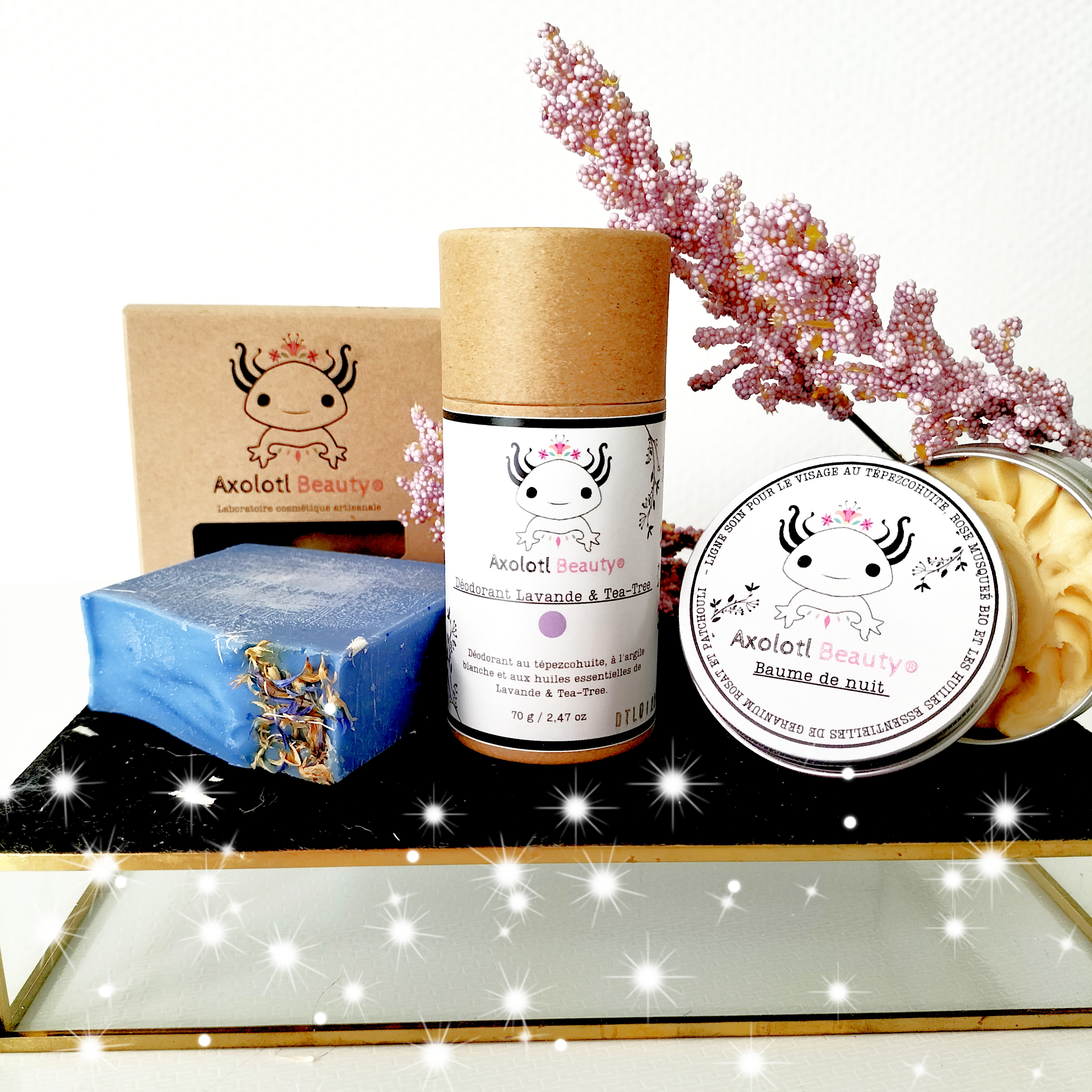 J'ai pu découvrir la marque axolotl beauty et j'étais incroyablement surprise de découvrir de très bon produits autant l'efficacité que l'odeur, j'ai eu donc un savon, baume et déodorant à la lavande l'odeur est très prononcé mais ça ne me dérange pas plus que ça j'adore quand sa sent bon c'est une très belle marque que je vous recommande vivement ! 🥰 Les produits sont efficaces n'hésitez pas à aller chez axolotlt vous serez conquis(es).