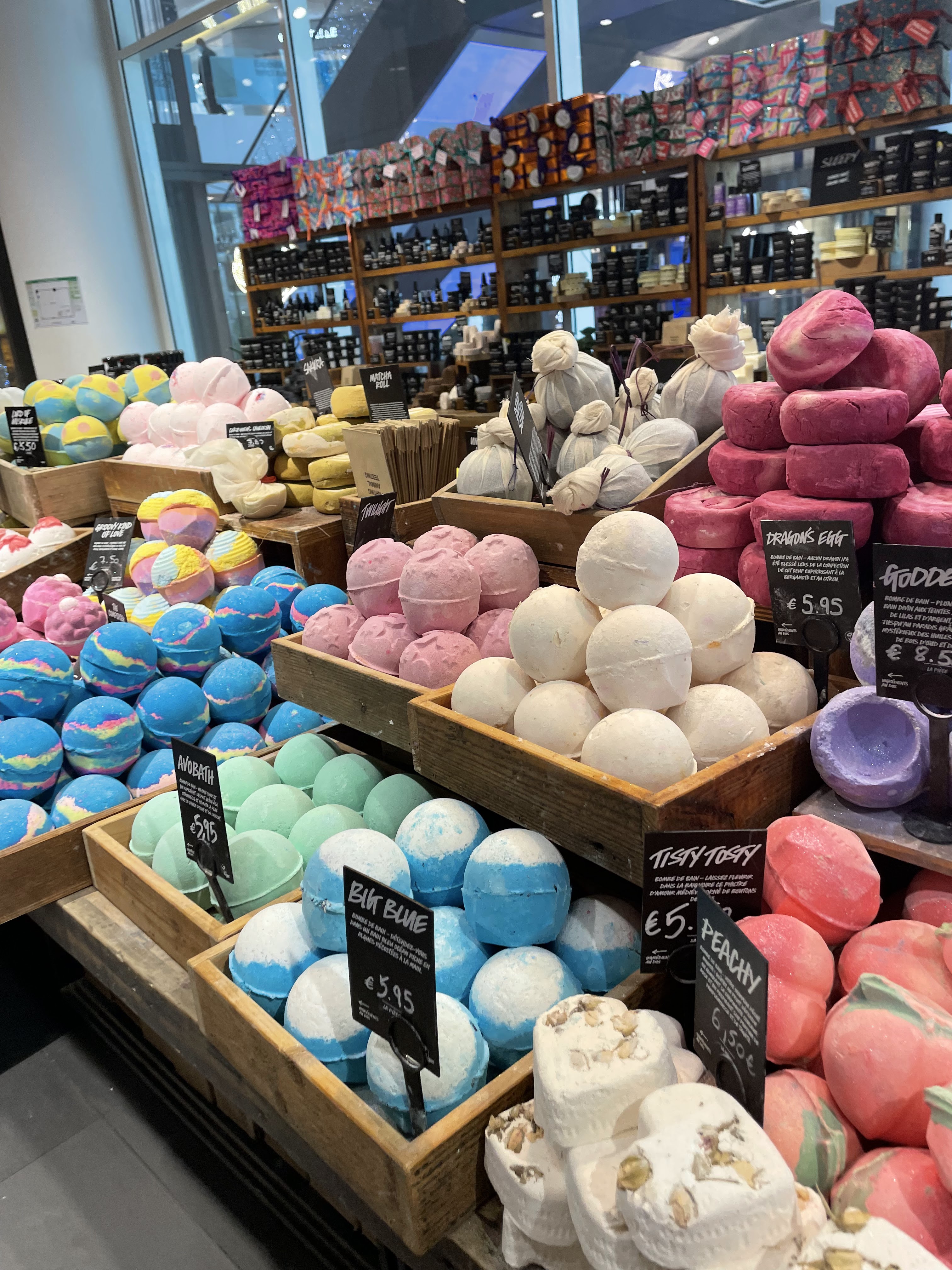 Vraiment produit lush de qualité et prix rien dire les vendeuses sont super sympa .elle sont pas comme dans certains enseigne ou force les gens acheter vous suivre comme des toutous. Bien contraire .les produit sont naturels et en plus il récupère les pots et recycler et franchement pour la planète c'est top